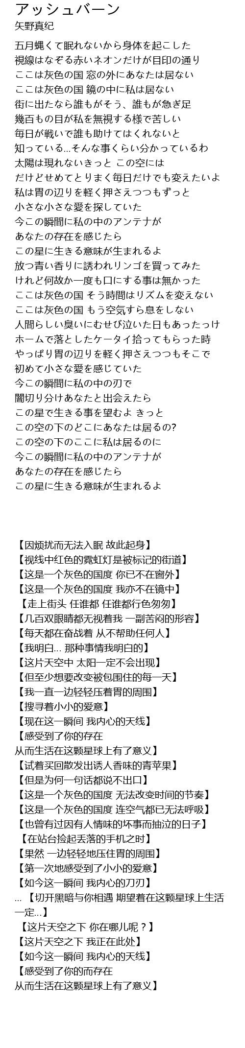 | [00:19.26] | ここは灰色の国 窓の外にあなたは居ない |