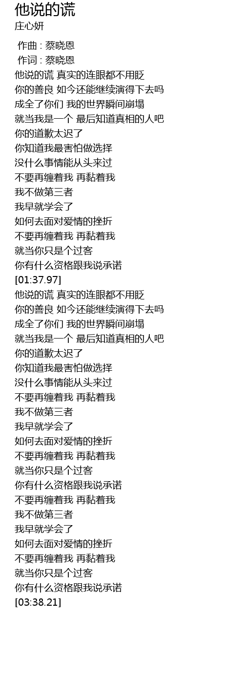 | [00:19.51] | 他说的谎 真实的连眼都不用眨 |