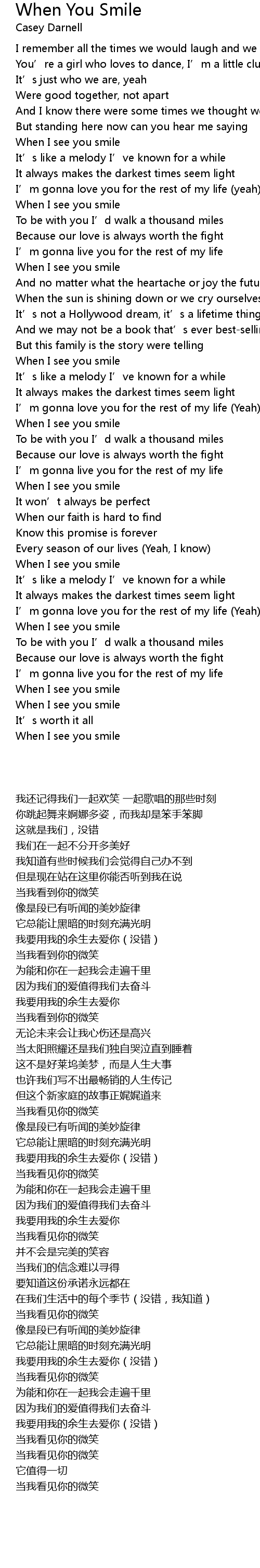 | [00:15] | I remember all the times we would laugh and we would sing |