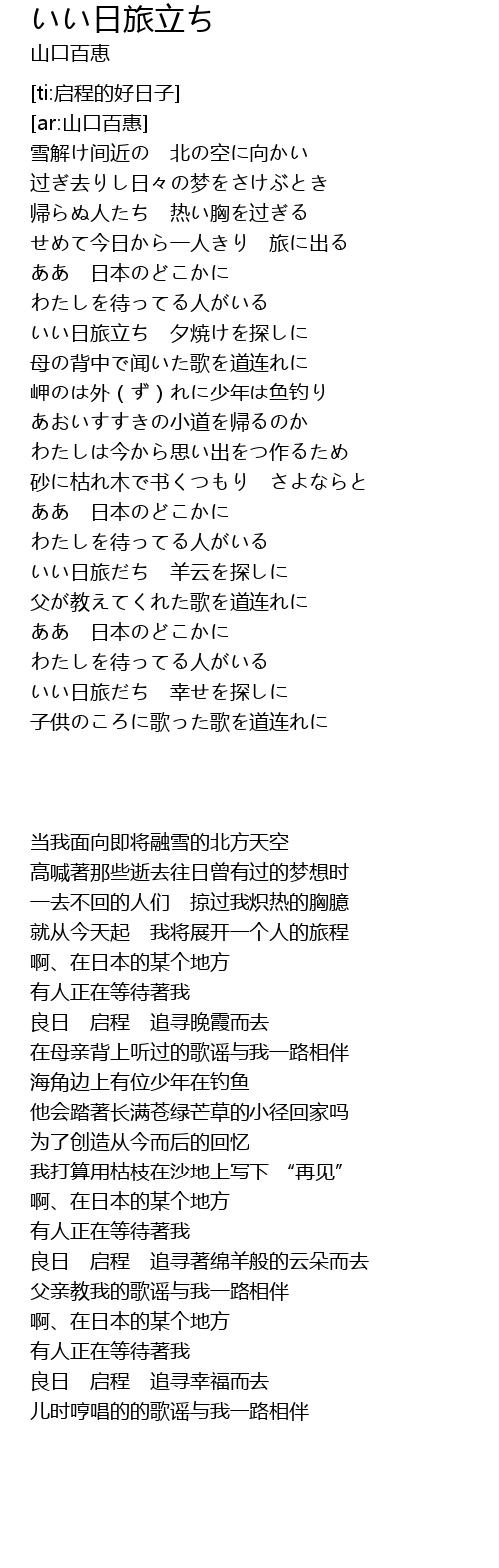 | [03:43.879] | いい日旅だち 幸せを探しに |