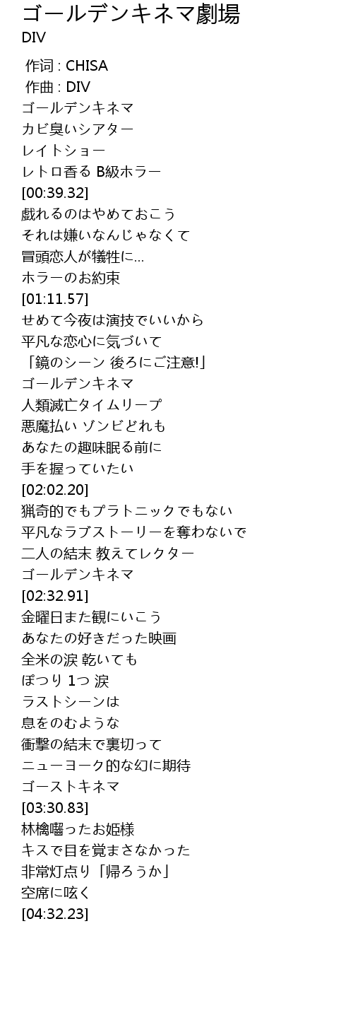 | [02:28.38] | ゴールデンキネマ |