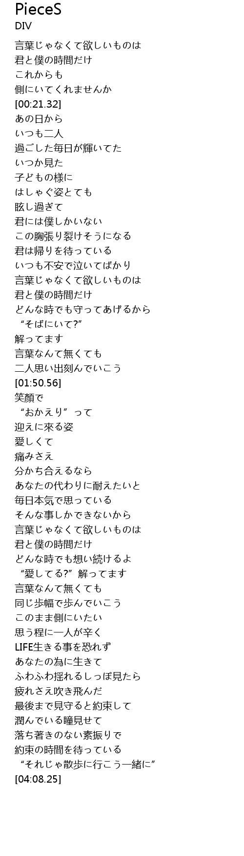 | [01:35.48] | “そばにいて?” |