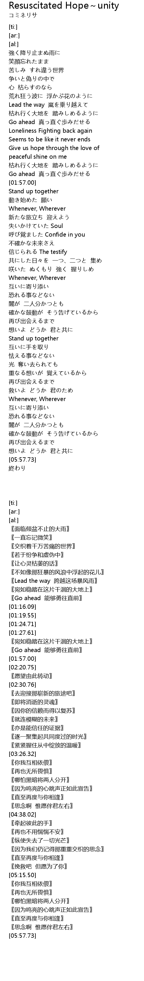 | [00:47.26] | Lead the way 嵐を乗り越えて |