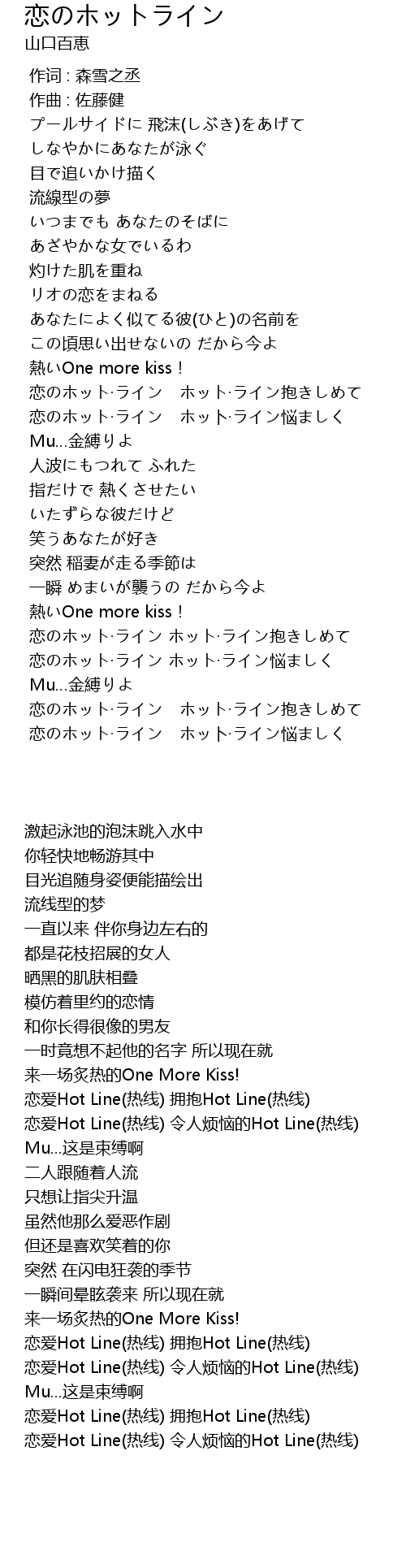 | [02:23.527] | 恋のホット·ライン ホット·ライン抱きしめて |