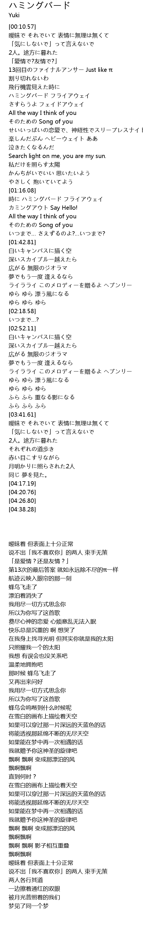 | [00:40.04] | ハミングバード フライアウェイ |