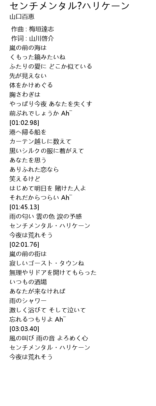 | [01:54.13] | センチメンタル・ハリケーン |