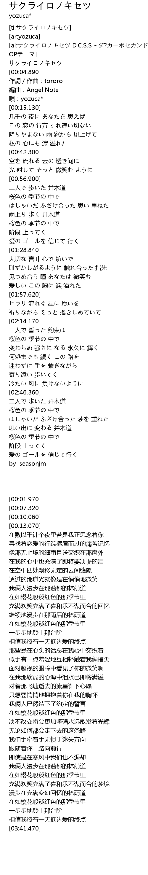 | [al:サクライロノキセツ D.C.S.S ~ダ?カーポセカンドシーズン OPテーマ] | |