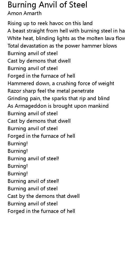 Burning Anvil of Steel Lyrics