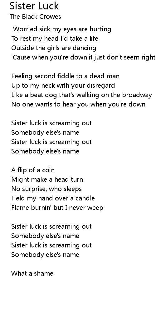 Sister luck is screaming out |