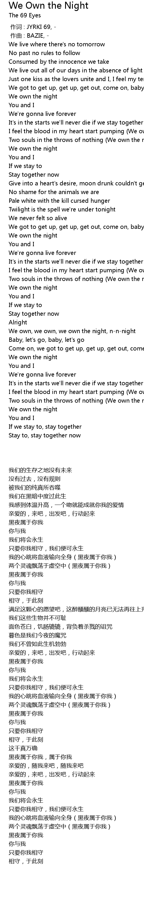 | [02:44.96] | We own, we own, we own the night, nnnight |