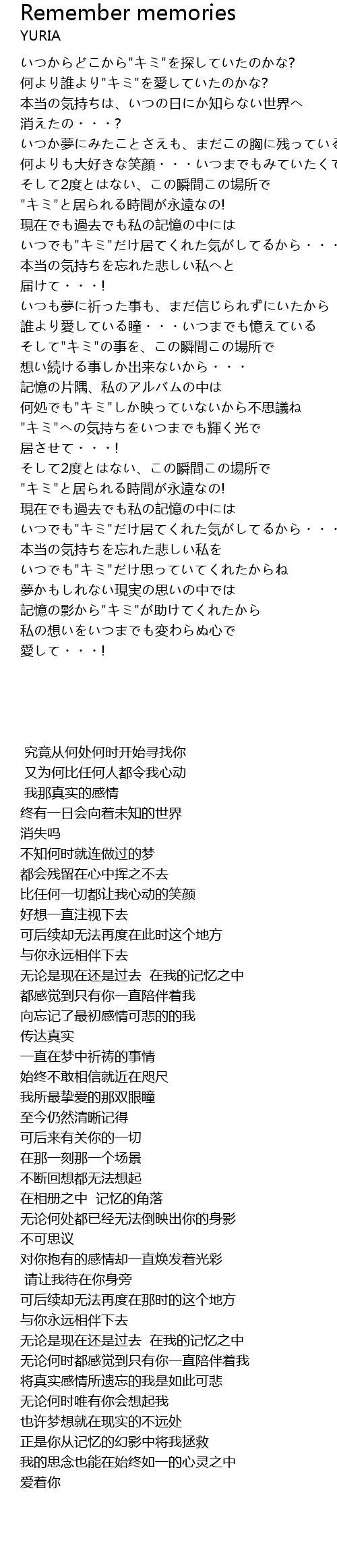 | Song | Remember memories |