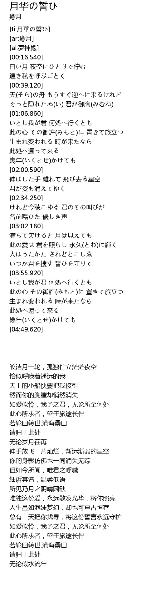 | [03:41.600] | いつか君を捜す 誓ひを守りて |