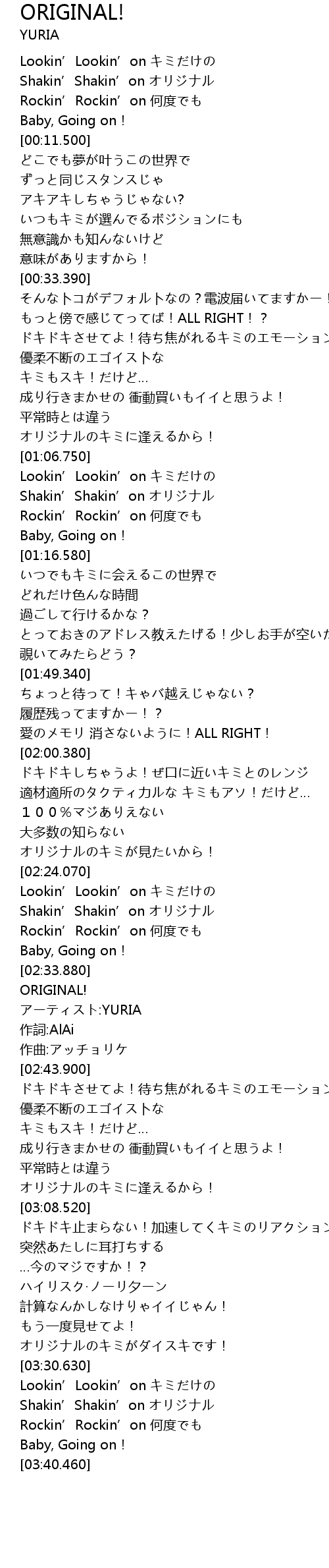 | [03:05.720] | オリジナルのキミに逢えるから! |