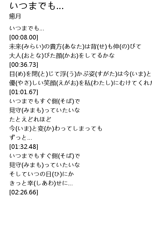 | [02:00.55] | いつまでもすぐ側(そば)で |