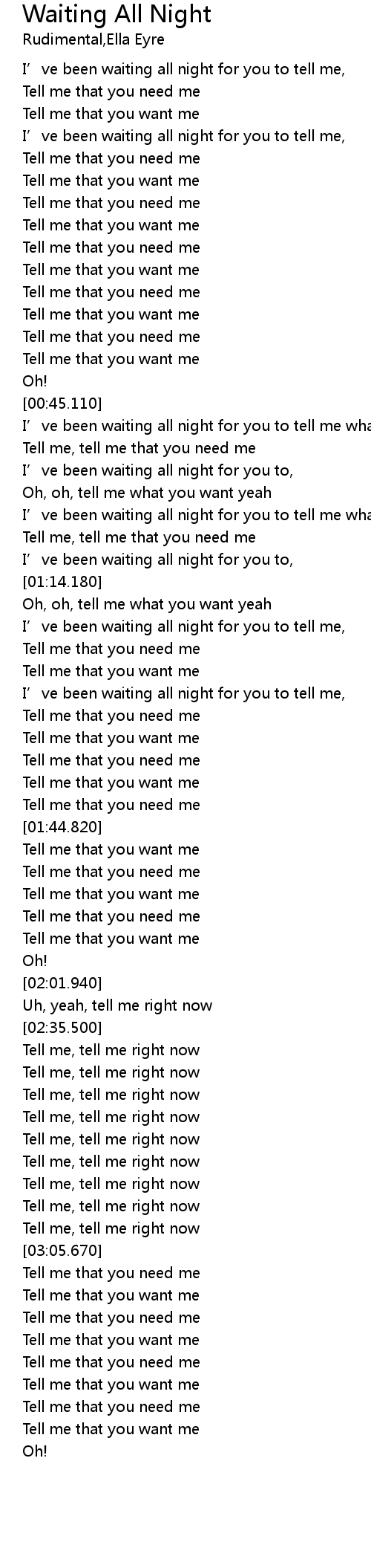 | [00:11.410] | I’ve been waiting all night for you to tell me, |