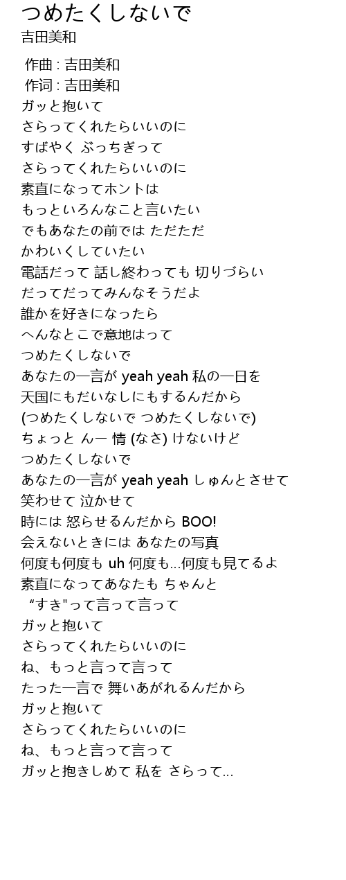 | [02:22.270] | (つめたくしないで つめたくしないで) |