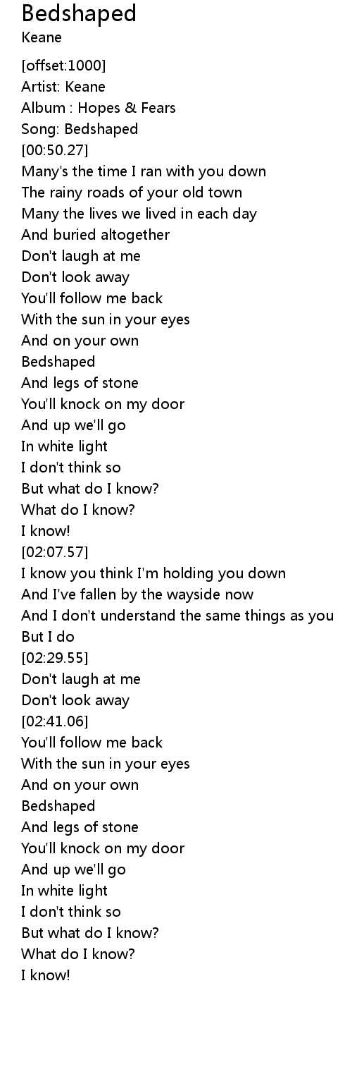 Bedshaped Lyrics