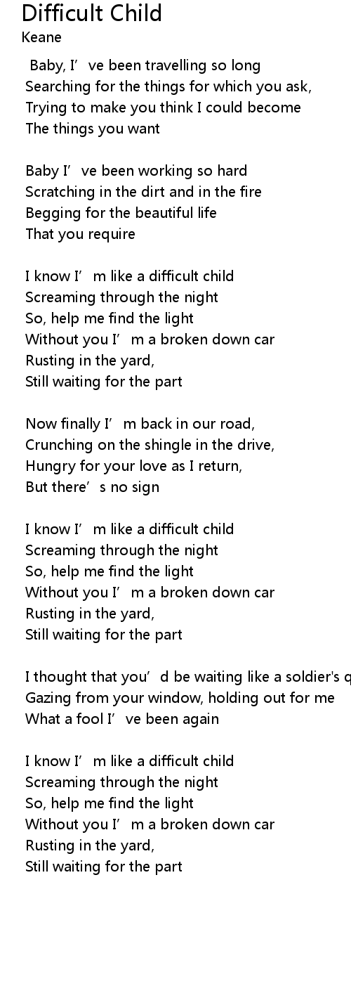 | Song | Difficult Child |
