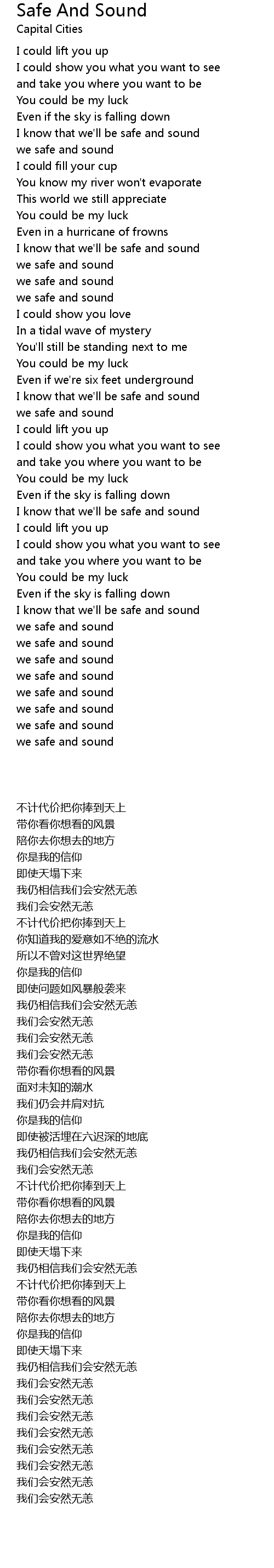 I know that we'll be safe and sound |