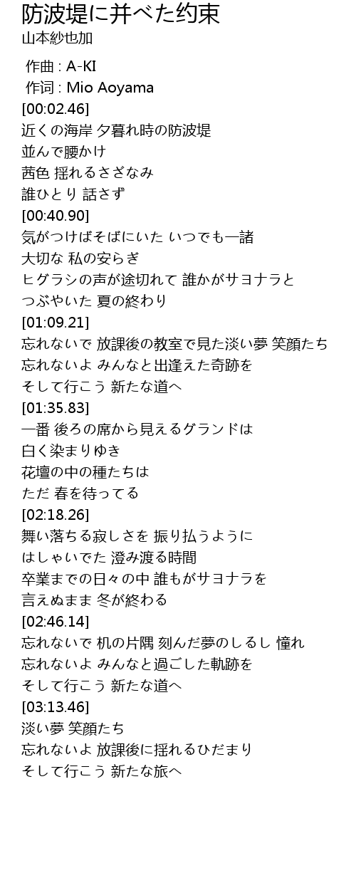 | [00:00.682] | zuò cí : Mio Aoyama |