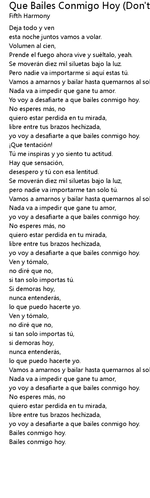 | Song | Que Bailes Conmigo Hoy (Don't Wanna Dance Alone) |