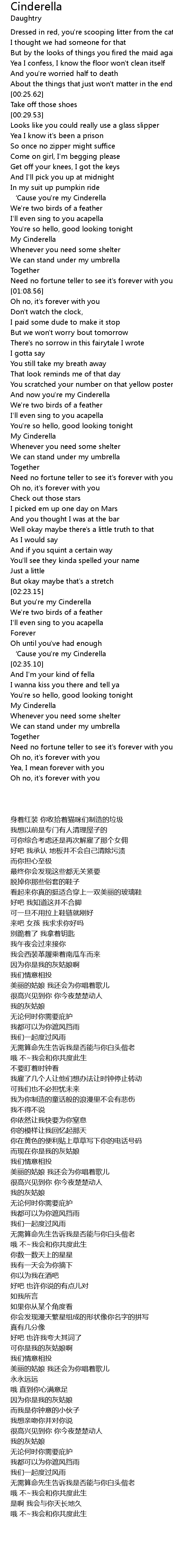 | [02:23.93] | But you' re my Cinderella |