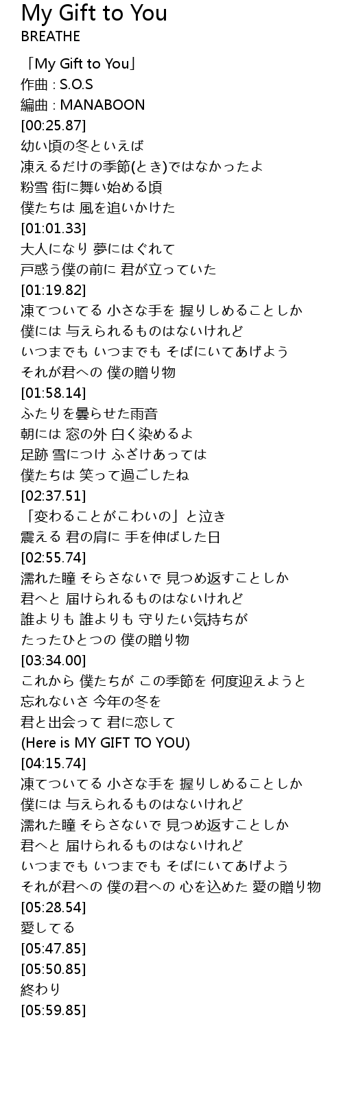 | [00:00.87] | 「My Gift to You」 |