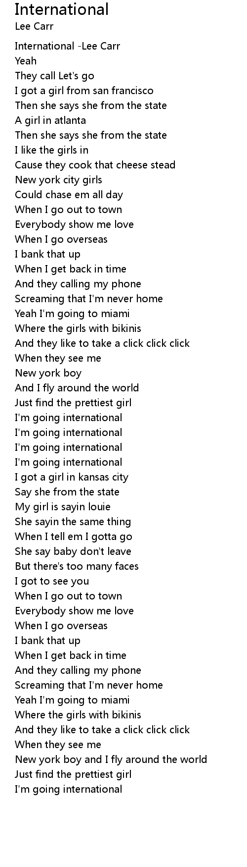 | [00:00.00] | International -Lee Carr |