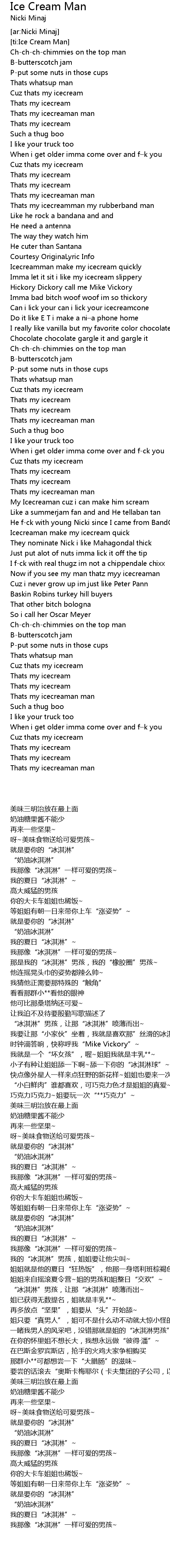 | [00:54.60] | Imma let it sit i like my icecream slippery |