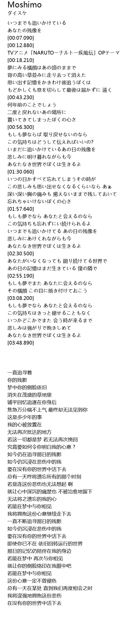 | [03:32.310] | あなたなき世界でぼくは生きるよ |