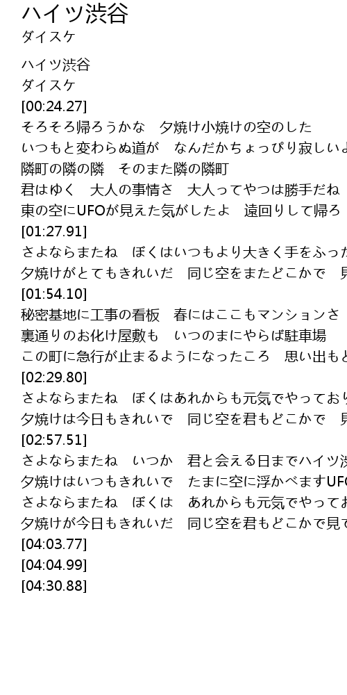 | [03:17.42] | さよならまたね いつか 君と会える日までハイツ渋谷 |