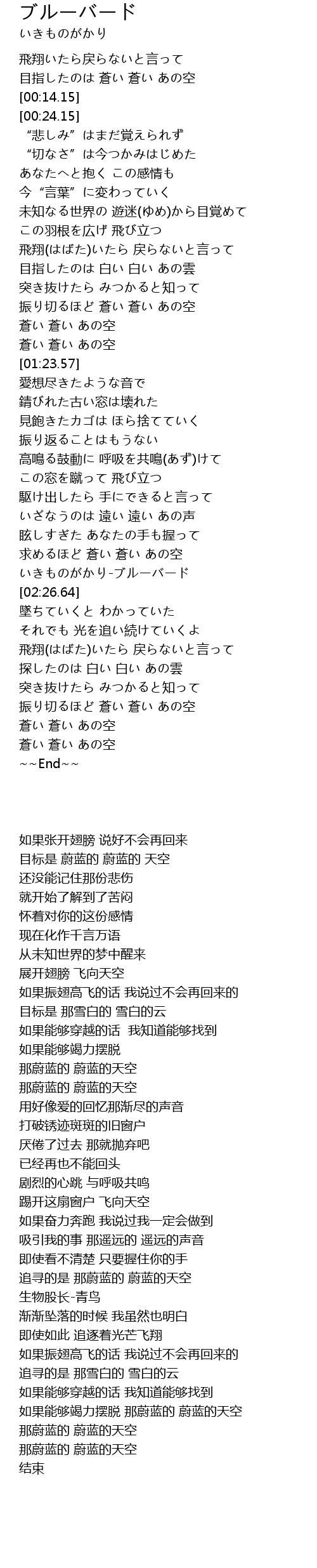 | [02:20.46] | いきものがかり-ブルーバード |