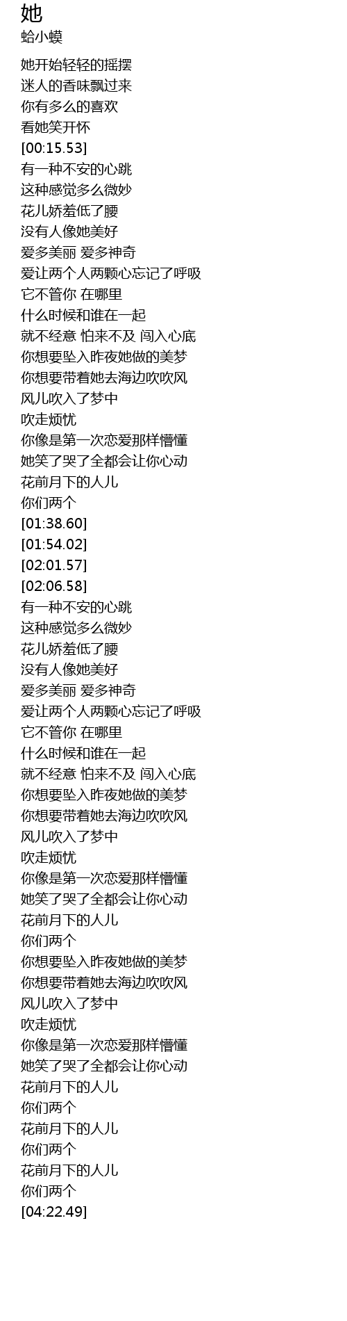 | [03:51.95] | 她笑了哭了全都会让你心动 |