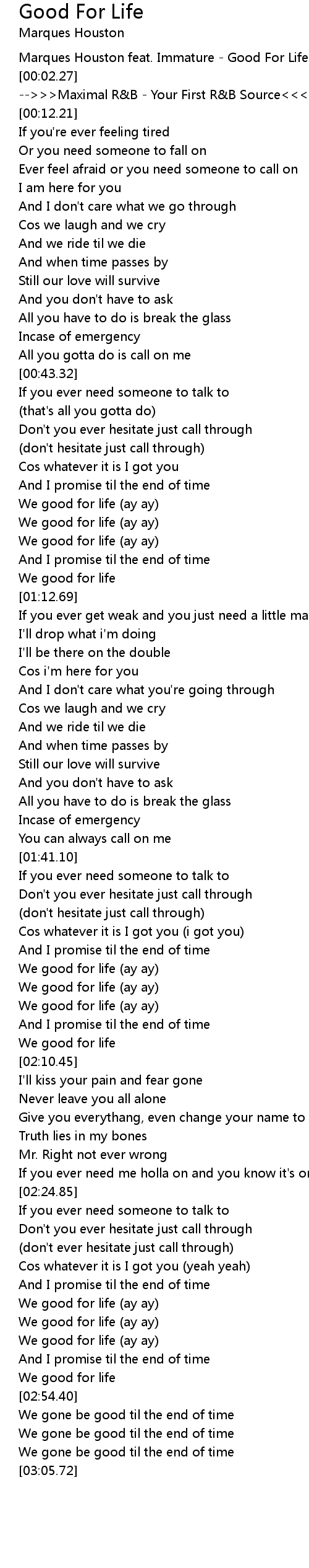 Marques Houston feat. Immature - Good For Life |