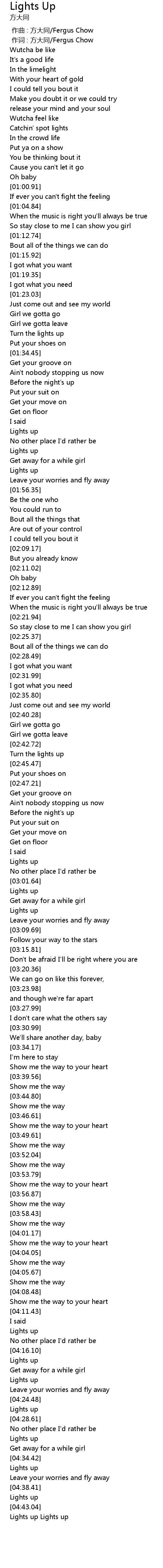 | [00:01.00] | zuò cí : fāng dà tóng Fergus Chow |