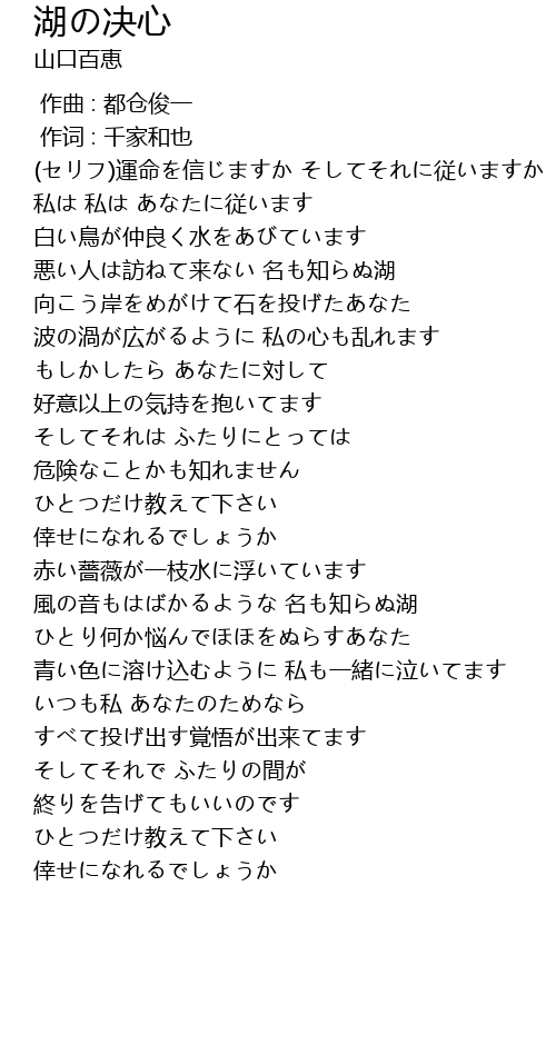 | [01:53.33] | 風の音もはばかるような 名も知らぬ湖 |