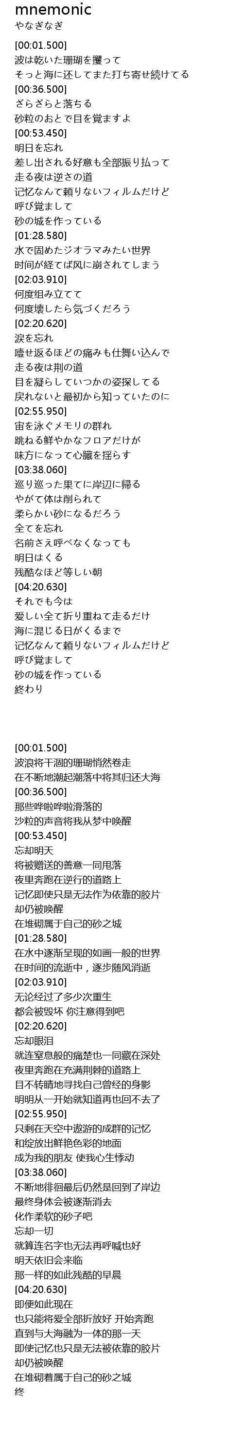 | [00:18.690] | 波は乾いた珊瑚を攫って |