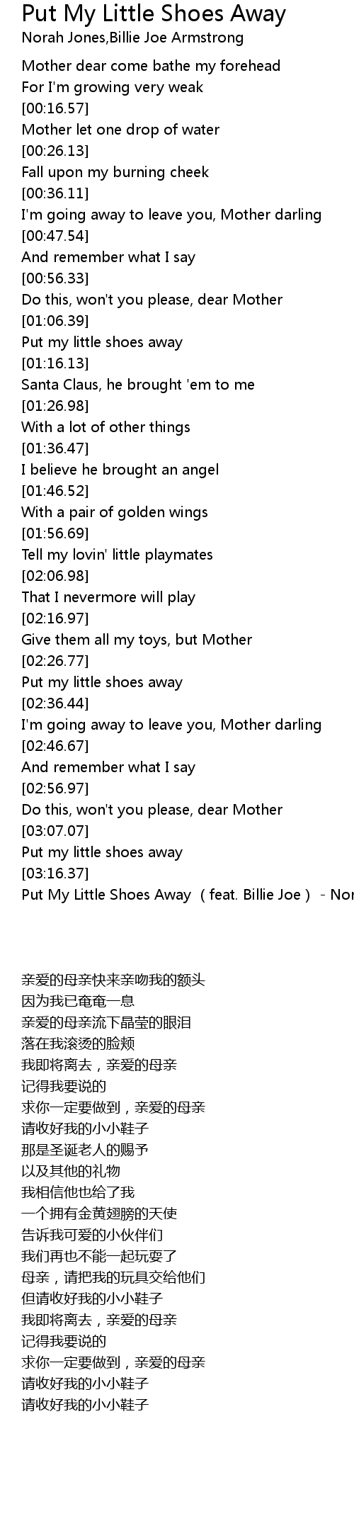 | [03:23.92] | Put My Little Shoes Away (feat. Billie Joe) - Norah Jones |