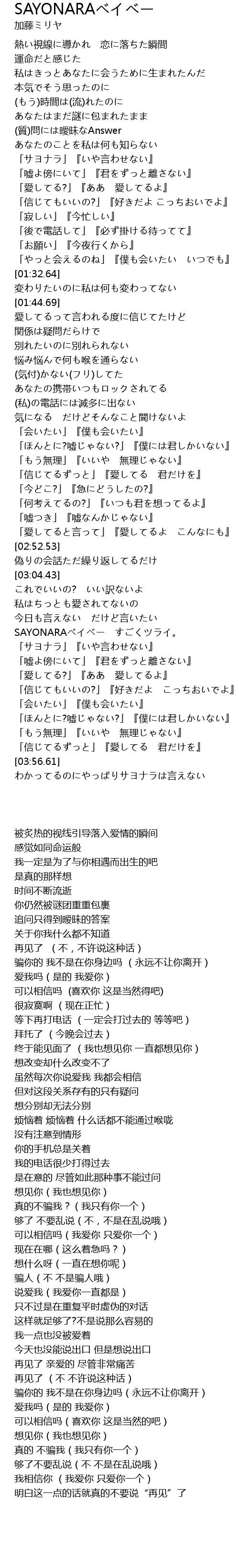 | [03:22.32] | 「サヨナラ」『いや言わせない』 |