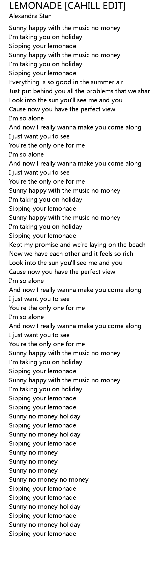 Sunny no money no money |