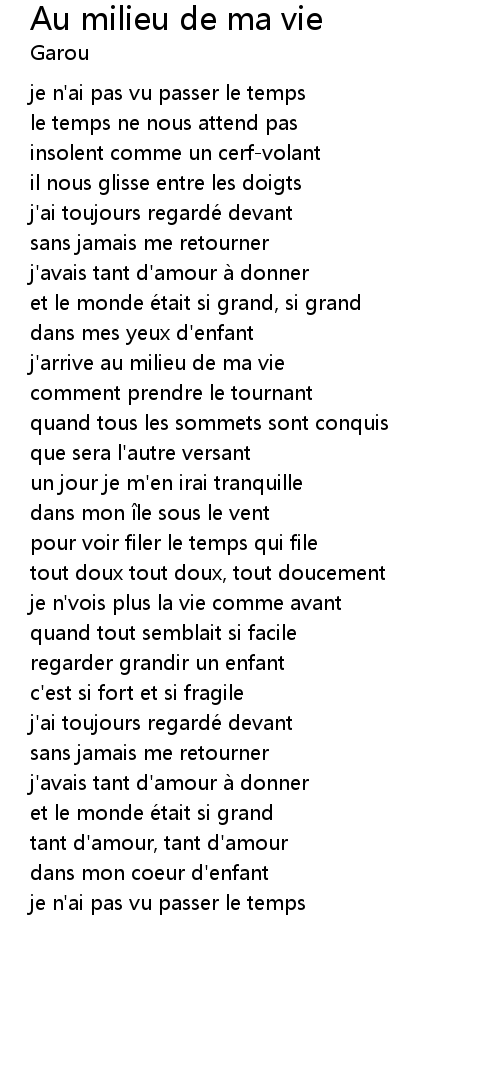 | Song | Au milieu de ma vie |