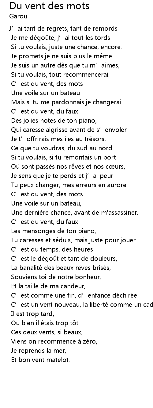 | Song | Du vent des mots |