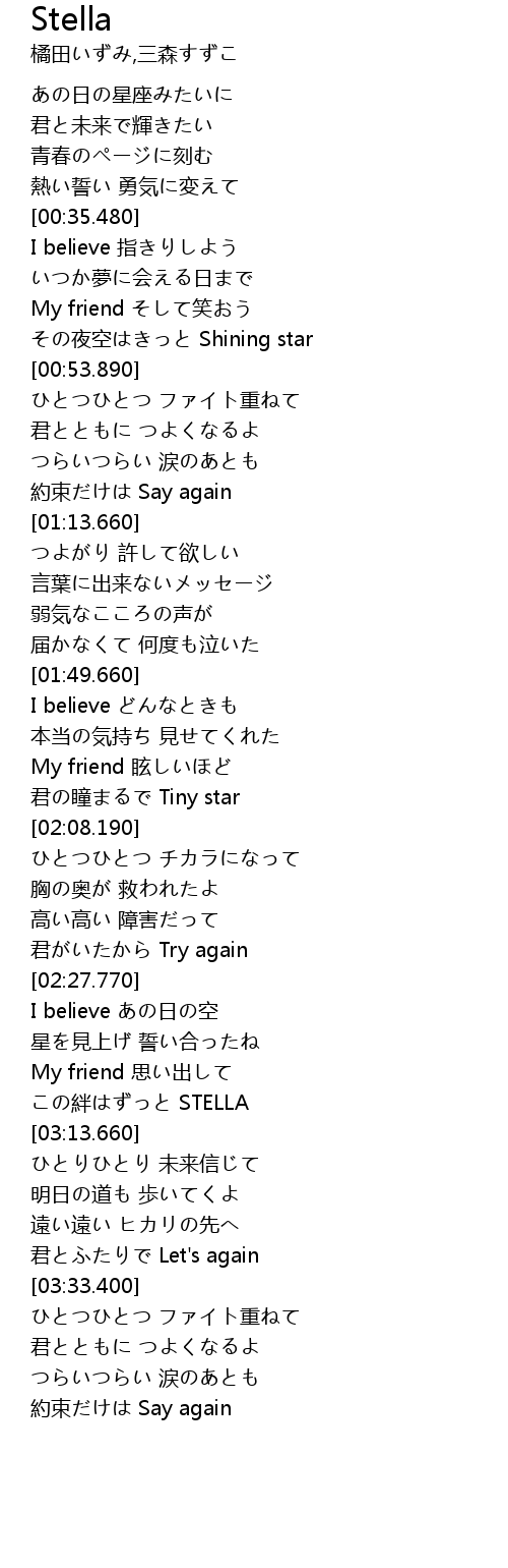 | [00:49.210] | その夜空はきっと Shining star |