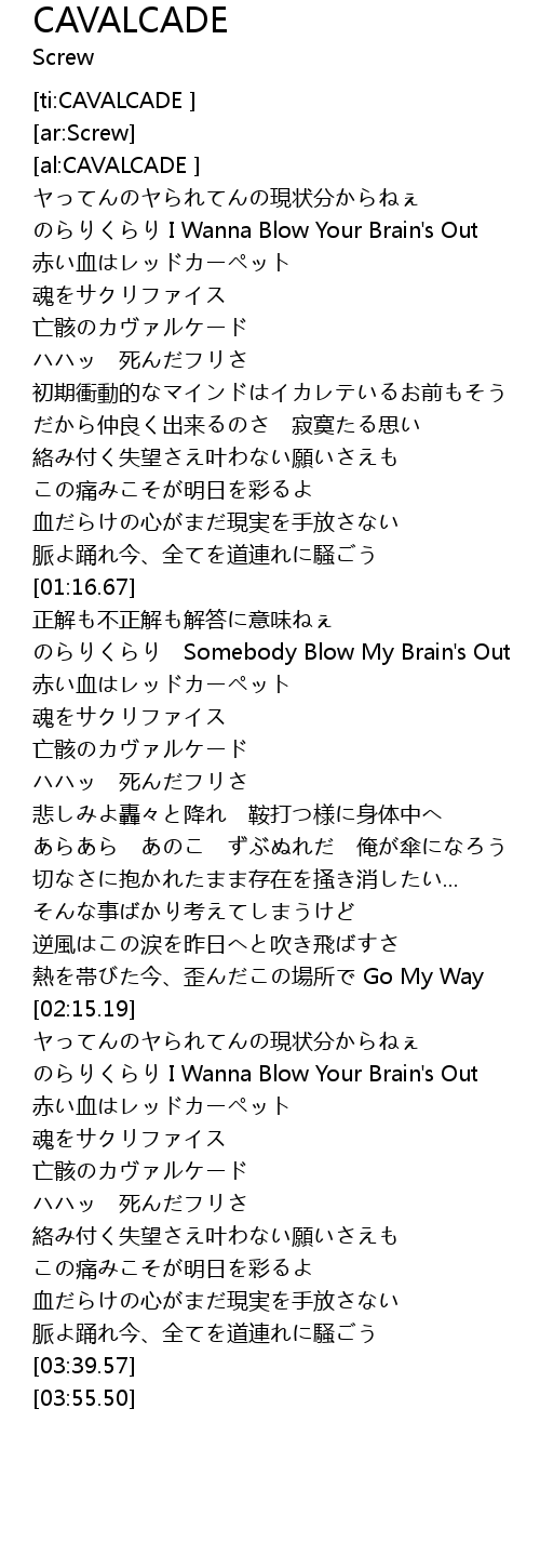 | [02:59.53] | のらりくらり I Wanna Blow Your Brain's Out |