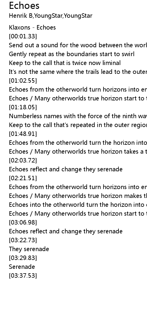 | [02:43.64] | Echoes / Many otherworlds true horizon makes the endless ever present |