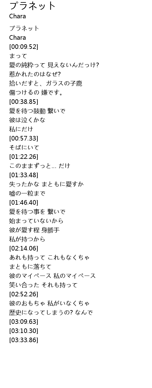 | [00:00.26] | プラネット |