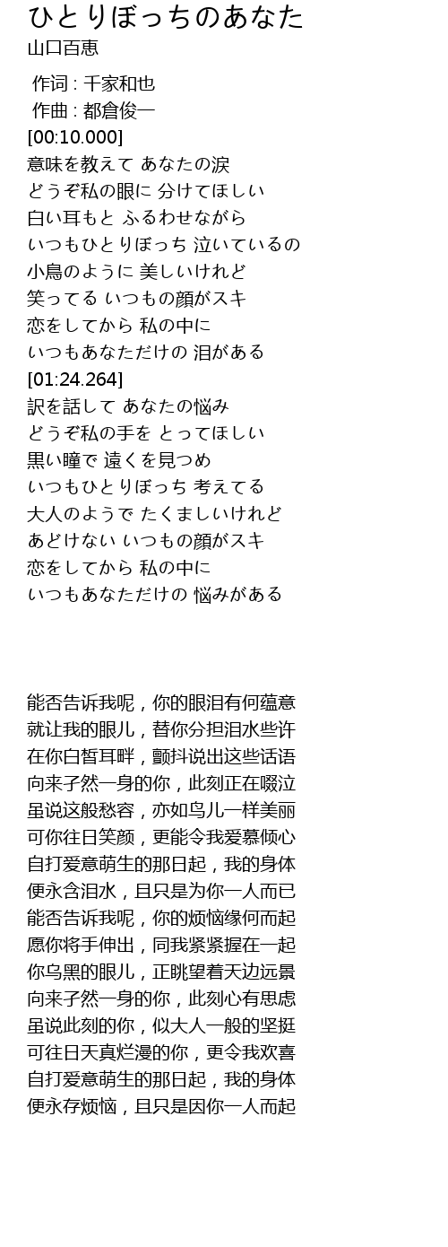 いつもあなただけの 泪がある |