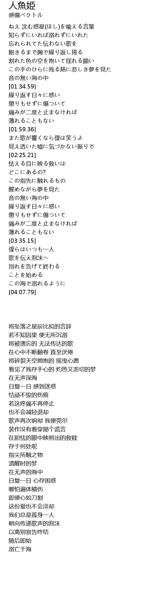 | [00:25.71] | ねえ 沈む惑星(ほし)を喩える言葉 |