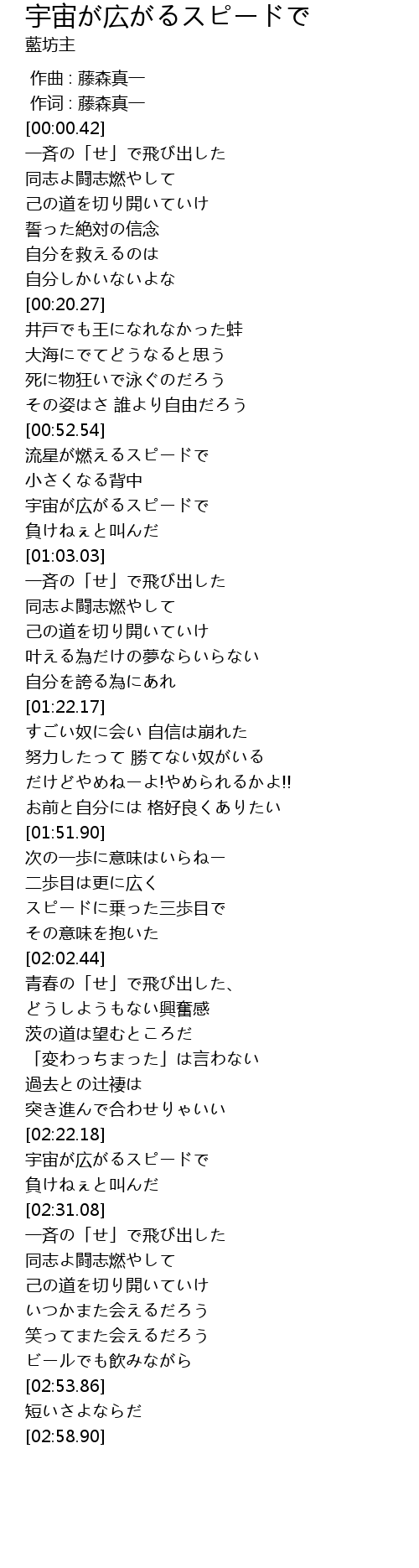 | [00:57.60] | 宇宙が広がるスピードで |