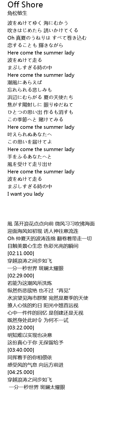 | [01:53.000] | Oh 真夏のうねりは すべて巻き込む |